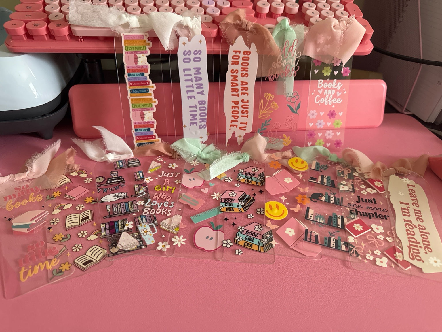 These clear acrylic bookmarks are the perfect accessory for any book lover – cute, durable, and full of personality. Each one features a vibrant UV-printed design (think florals, smileys, cozy coffee cups, and more) on crystal-clear acrylic with an optional frayed ribbon tie to finish it off just right. Perfect for gift-giving, book clubs, or just treating yourself. 💕