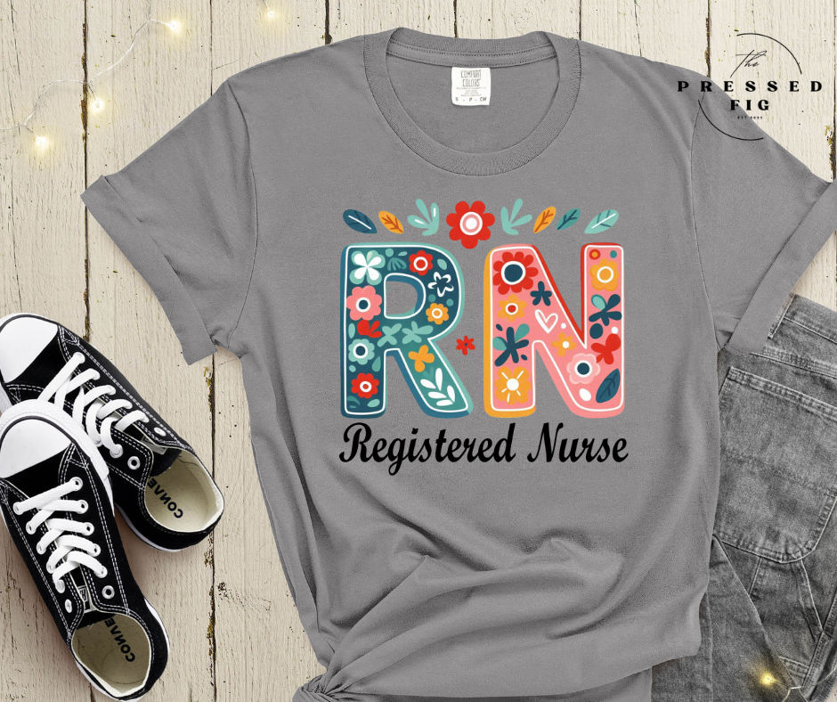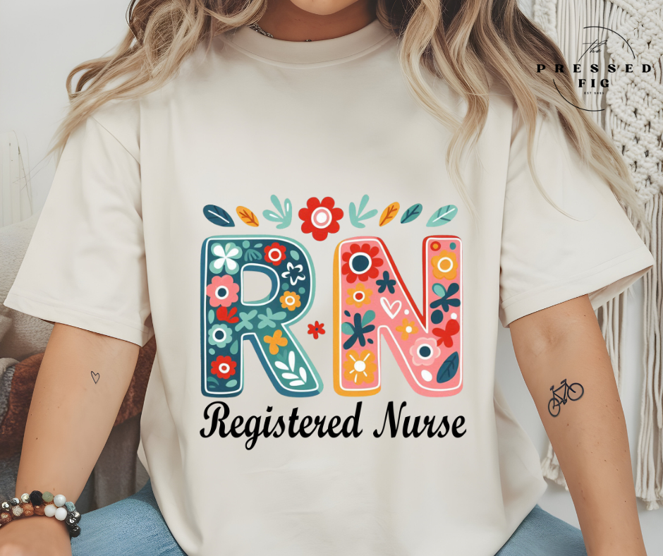 Our “Floral RN” shirt is where flower power meets nurse power. Featuring a bold, retro floral RN design, this tee was made for proud, certified baddies who run the unit and the vibe check. Perfect for scrubs-and-sneakers days or casual flex Fridays.