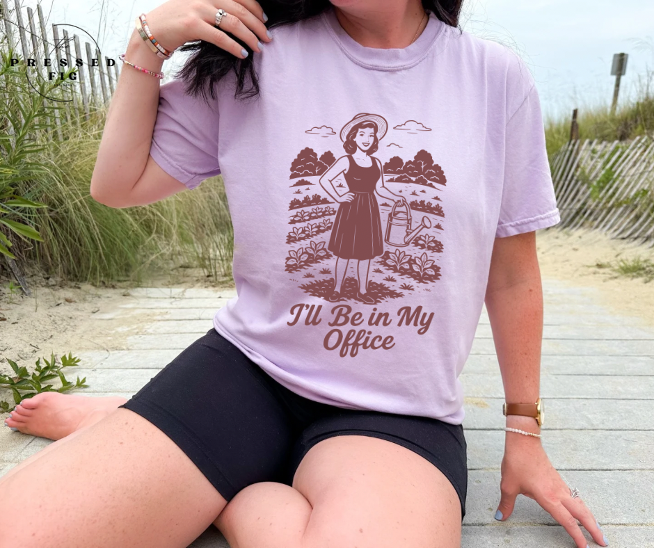 The I’ll Be in My Office Tee is for the girls whose happy place has a watering can and no WiFi. Featuring a vintage-inspired farm babe and soft Comfort Colors cotton, this tee is perfect for escaping into your own little world—one tomato plant at a time.