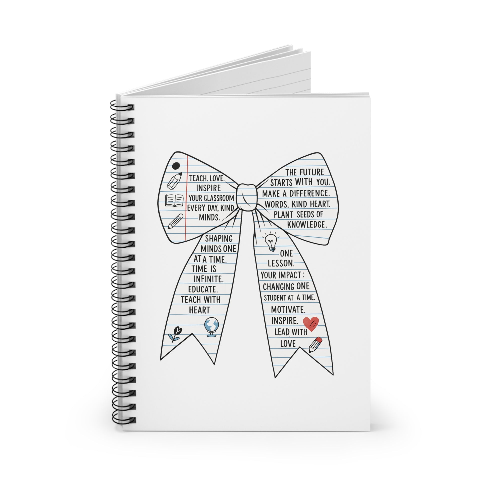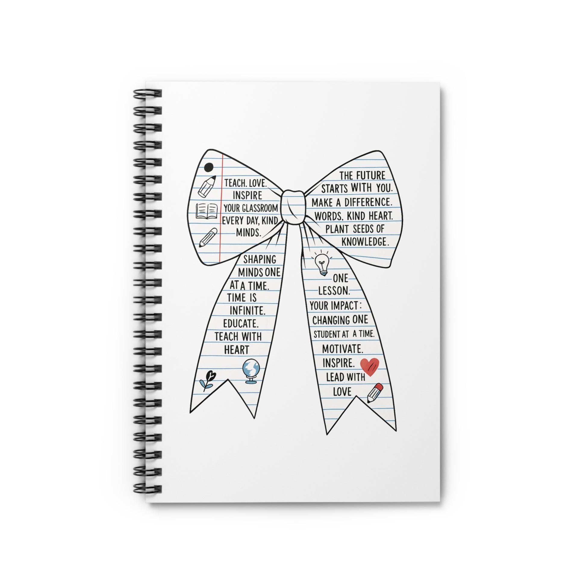 “Teacher Affirmation Bow” Spiral Notebook – All-White Cover