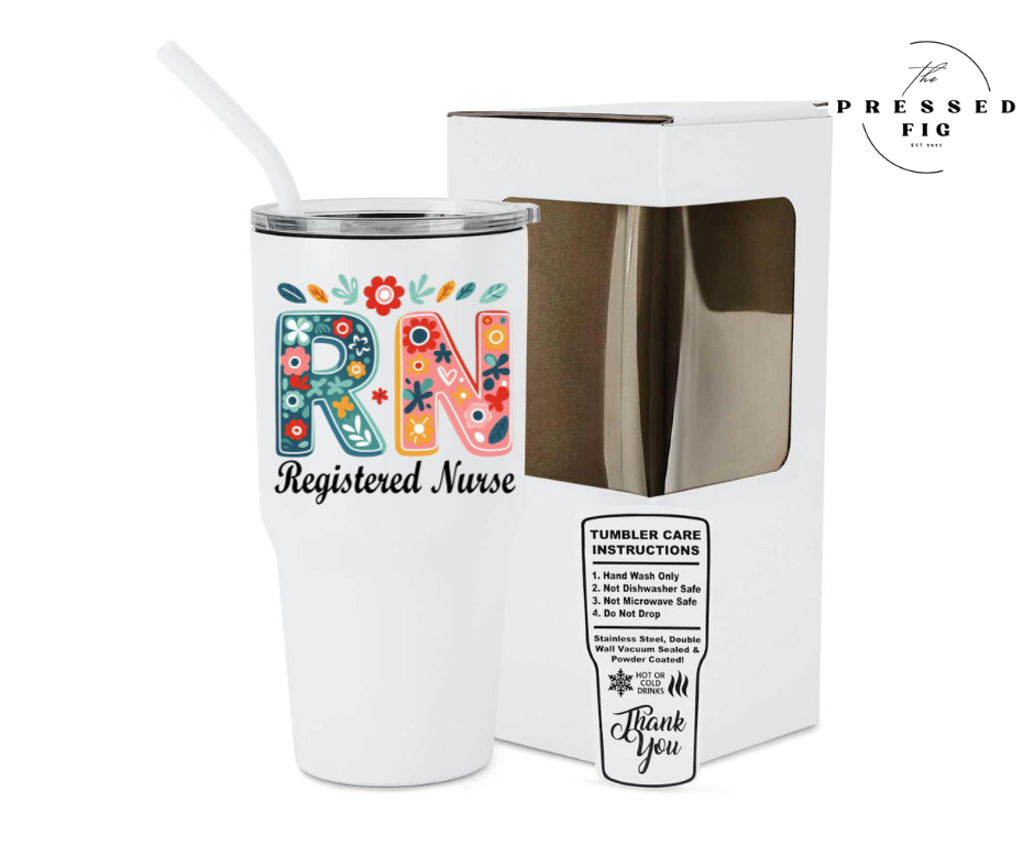 Celebrate the nurses who do it all with this vibrant 30 or 40oz tumbler, featuring a retro floral RN design that brings personality and pride to every sip. Whether you’re in scrubs or off the clock, this cup is perfect for showing love to your profession (or gifting to your favorite nurse!).
